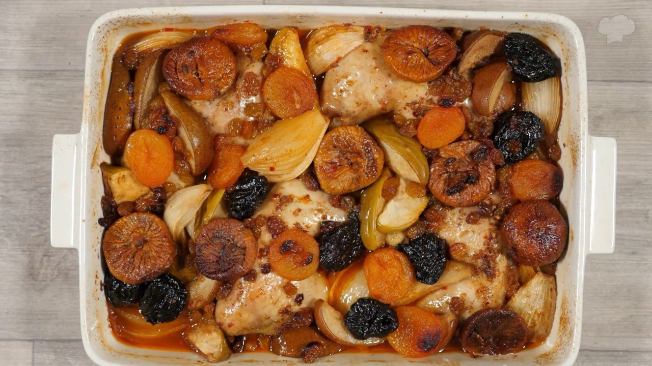 עוף עם תפוחים, אגסים ופירות יבשים