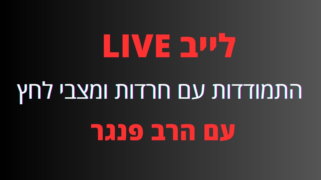 התמודדות עם חרדות ומצבי לחץ - הרב יצחק פנגר בשידור חי LIVE