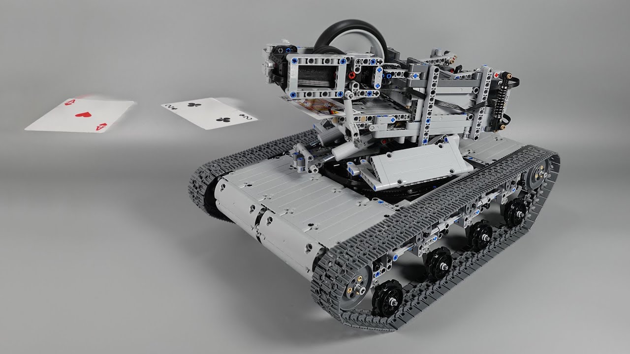 Building and testing a remote controlled Lego Technic playing card shooting tracked vehicle. Chapters: 00:00 Tracks & Drivetrain 03:12 Turntable 06:51 Feeding Mechanism 09:33 Card Shooting Wheel 12:17 Tilt Mechanism 13:25 Card Press 15:55 Test Drive Buwizz 2.0 - https://buwizz.com/shop/1-buwizz-2/?ref=155 Lego Buggy Motor - Part Number: 8287 Buwizz Motor (Buggy Motor Supplement): https://buwizz.com/shop/buwizz-motor/?ref=155 Laser Tachometer: https://amzn.to/3o7ZUXK Please note: I get a commission if you buy via Amazon or Buwizz link above. Check out my Facebook Page for more details about my Lego collection and parts: https://www.facebook.com/Brick-Technology-102247732301972 #bricktechnology #legotechnic #asmr #playingcards #trickshot #buwizz #engineering #cardshoot #rc