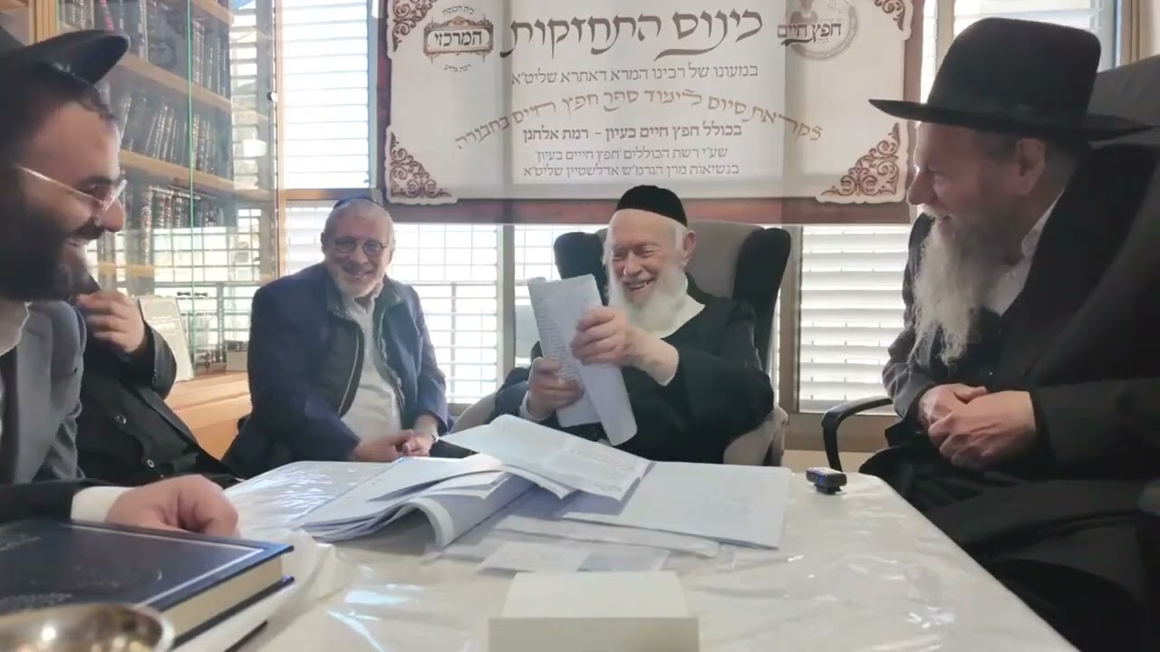 כנס חיזוק נערך במעונו של מרן פוסק הדור הגר"י זילברשטיין שליט"א לאברכי כולל 'חפץ חיים בעיון' שבנשיאות הגרמ"ש אדלשטיין שליט"א, בין הדברים אמר: 'אשריכם שאתם עוסקים בדבריו של ענק התורה הזה', לסיום אמר: 'ברור כשמש שהלומדים והתומכים בלימוד חפץ חיים בעיון בחבורה, זה סגולה לרפואה ולישועות גדולות', להלן הדברים באדיבות דברי חמד, צפו במעמד המיוחד: על התורה הקדושה נאמר (איוב יא, ט) 'אֲרֻכָּה מֵאֶרֶץ מִדָּהּ, וּרְחָבָה מִנִּי יָם', ואכן עולם התורה בדורנו התברך בריבוי תורה אדיר ועצום, כאשר בכל תחום תורני שהוא, קיים מגוון רב של ארגונים ויוזמות לעידוד וריבוי לומדי תורה ששקועים ועסוקים בליבון ושינון אותו נושא. אך זכה הכהן הגדול מאחיו, רבינו הגדול מרנא ה'חפץ חיים' זיע"א, שחלק זה של 'שמירת הלשון' אותו עורר במפעל חייו, עולה על כולנה, הן בכך שכל בית ישראל, מכל העדות והחוגים, לומדים והוגים בספרו הגדול, והן בכך שהחיזוק והלימוד בעניינים אלו רק הולך ומתרבה מתקופה לתקופה, על ידי כמה וכמה ארגונים ובעלי זכויות רבות. אולם דומה כי רשת הכוללים 'חפץ חיים בעיון' שהוקמה בשנים האחרונות בנשיאות הגאון הגדול רבי מרדכי שמואל אדלשטיין שליט"א שוברת שיאים של עמל התורה בנושא חשוב זה, כאשר כיום ישנם עשרות סניפים בכל רחבי הארץ, בהם יושבים מדי שבוע אלפי תלמידי חכמים ושוקדים בלימוד הספר 'חפץ חיים' בעיון, ואף שומעים שיעורים מגדולי התורה, ומתחזקים על ידי זה למעשה בשמירת הלשון כהלכה. כזה הוא סניף 'כולל חפץ חיים בעיון' השוכן בבית הכנסת 'המרכזי' ברמת אלחנן, בראשות הרה"ג רבי אי"ש קוט שליט"א, המונה קבוצה נבחרת מפארי השכונה, המתקבצים מדי ליל שישי לשעה של קורת רוח ועונג הנשמות, בלימוד עיוני ומקיף בספר 'חפץ חיים', כאשר המרא דאתרא מרן רבינו שליט"א מלווה ומדריך ואף עוקב מקרוב אחר סדר ותוכן הלימוד. וכעת, לקראת סיום הלימוד בספר 'חפץ חיים' יחד עם כל בני החבורה, התכנסו ועלו כל חברי הכולל למעונו של מרן רבינו שליט"א לכינוס התחזקות, יחד עם נשיא רשת הכוללים הגרמ"ש אדלשטיין שליט"א, וראשי רשת הכוללים הרה"ג רבי משה זכאי שליט"א והרה"ג רבי עקיבא זריצקי שליט"א. כמו כן השתתף במעמד מזכה הרבים הנודע הרב ר' אהרן מרגלית שליט"א (בעמח"ס 'אתהלך'), אשר הוא שותף נאמן יחד עם רשת הכוללים, ופועל עמם ללא הרף להגדיל תורה ולהאדירה, ובפרט בענין שמירת הלשון. גדולתו וקדושתו של מרן החפץ חיים זיע"א במרכז המעמד כובד רבינו לשאת דברים לכבוד המעמד הנשגב, כאשר בפתח דבריו הקדים ודיבר אודות גדלותו הנוראה של רבינו החפץ חיים זיע"א: "שמעתי מרבותיי סיפור נורא, כידוע מו"ר מרן הגר"י אברמסקי זצ"ל נאסר בגלות בסיביר, היות והפיץ תורה ברוסיה הקומוניסטית. והנה, בערב יום הכיפורים ישב הח"ח בביתו, ואמר מעצמו: 'כעת שחררו את הרב אברמסקי'..., ויהי לפלא, שהרי אז לא היו טלפונים בנמצא, והח"ח מעצמו אמר כך. על אדמורי"ם שמעתי כאלו סיפורים, אבל על ראש הליטאים בעולם עוד לא שמעתי...". רבינו סיפר מעשה נוסף הממחיש את גודל קדושתו של החפץ חיים: "פעם באו לחפץ חיים ובכו וביקשו שיתפלל בעבור אשה שנמצאת במצב קשה על שערי מוות, והרופאים מיואשים מחייה. פנה החפץ חיים ושאל, האם יש כאן מישהו שהשפיע על אחד שיסגור חנות בשבת? – ואכן, קם אחד ואמר שהוא הצליח להשפיע, ואמר לו הח"ח: 'אם אתה מוסר את זכות המצוה הזו עבור אותה אשה, לכו ותגידו לה שהיא תבריא, ובעוד כמה דקות תוכל לילך על רגליה, וכן הוה". מאחר ועסק רבינו בדמותו רבת-ההוד של החפץ חיים, הוסיף וציין: "כידוע החפץ חיים רצה לבוא לגור בסוף ימיו בארץ ישראל, ובשנת תרפ"ו קנו עבורו דירה בעיר פתח תקווה, אך לבסוף הח"ח נהיה חולה וביטל את תוכניתו, אך רחוב חפץ חיים בפתח תקווה קיים עד היום. ובעבר יעצתי לאחד ששקל לקנות דירה בפתח תקווה, שיקנה ברחוב זה, שהיה מיועד לקדוש ישראל והדרו, ואכן שב ואמר לי שראה ברכה והצלחה וסייעתא דשמיא מיוחדת ברכישת דירה זו". החפץ חיים בדורינו – כמו הרמב"ם בשעתו! מיד לאחר מכן הוסיף רבינו לדבר בהתרג