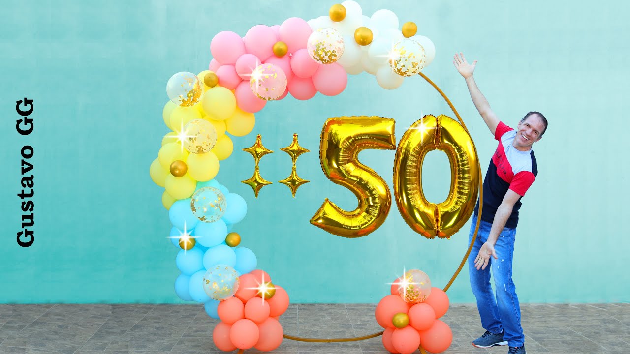 Aro gigante para decoraciรณn con globos ๐โจ Kit arco de globos: https://bit.ly/3kinfX5 Aro en Efavormart: https://bit.ly/3waOWD7 Tienda Efavormart: https://bit.ly/2QZgjBM รnete al canal : https://www.youtube.com/channel/UCFBbckHYDY_F17nEeK6zKVw/join Decoracion de cumpleรฑos 50 aรฑos ๐ arco de globos multicolor y oro. Materiales: Globos 10" rosado: 20 Globos 10" celeste: 20 Globos 10" blanco: 20 Globos 10" amarillo: 20 Globos 10" durazno: 20 Globos 10" Cristal con confetti: 10 Aro para decoraciรณn de 7 pies de altura (2.13 metros) https://bit.ly/3waOWD7 Globos foil estrella: 4 Globos 5" dorado Chrome: 10 Globos de nรบmeros foil 34": 2 Otros: Bandas elรกsticas; hilo de pescar (0.40); cinta adhesiva; puntos de silicona adhesiva Visita mi tienda: https://amzn.to/35gkoow 00:00 Arco de globos 01:27 Aro de globos 02:13 Unir guirnalda 03:04 decorar arco de globos 05:17 globos de numeros 06:55 tips finales como hacer arco de globos y decoraciones para cumpleaรฑos de 50 aรฑos Decoracion con globos dorados Decoracion con Gustavo gg