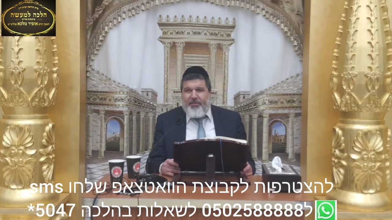 הצטרפו לערוץ שלנו ביוטיוב https://youtube.com/channelUCiT6KgOE1IDJ2XHE23Zk2Cg הצטרפו לשיעורי הרב אופיר מלכא בכול הארץ... ימים ראשון שני ושלישי: ירושלים ישיבת אור החיים 19:50 רחוב עזרא 1 ימי רביעי: 20:30 ברחבי הארץ פרסום בהתאם 22:10 בני ברק בי"הכ יביע אומר רח' עוזיאל 41 ימי חמישי : 17:45 ירושלים כולל בקרית נוער בית וגן שער 9 יום שישי:(פעם בשבועיים ) קרית אונו מאחורי הקניון בשעה 11:00 קרית גת ביה"כ אור החיים ענתות 3 11:00 כל שבוע אשדוד ביה"כ החיד"א 12:30 שבת: לאחר תפילת שחרית ירושלים בית הכנסת שערי ניסים רחוב שאול המלך 40 מענה הלכתי על ידי הרב שליט"א מדי יום שני בין 17:00-18:30 5047* שלוחה 1 כל יום רביעי בשידור חי שיעורו של הרב אופיר מלכא מיביע אומר בשעה 22:15 !!! קישורים 📲 לצפיה בשידור חי בקול הלשון https://www.kolhalashon.com/New/Live/LiveShiurimTree.aspx?RavID=1810&ShowVideo=True 📲לצפיה בשידור חי ביוטיוב https://www.youtube.com/@user-td5hq9zj1x 📲לצפיה ביוטיוב בטלפון הכשר בחרו מס 71 http://wiki.netfree.link/wiki/ערוצים_ביוטיוב_הפתוחים_בנטפרי