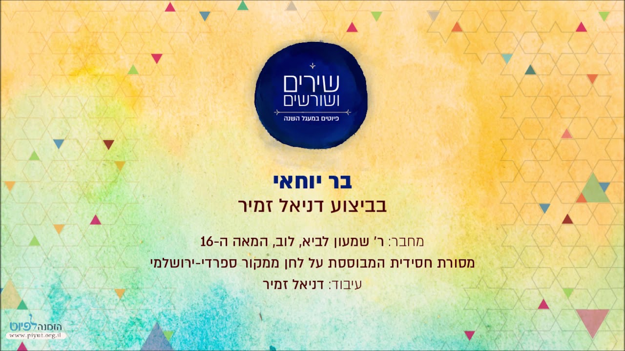 הפקה מיוחדת של הזמנה לפיוט מבית עמותת סנונית בשיתוף נענע דיסק, עבור תכנית "שירים ושורשים" של משרד החינוך. ההקלטה בתמיכת קרן מתנאל. הפיוט "בר יוחאי" שכתב ר' שמעון לביא הוא אחד הפיוטים הנפוצים בתפוצות ישראל, ונחשב לפיוט המוביל בל"ג בעומר. אנו בהזמנה לפיוט הפקנו עבור משרד החינוך עיבוד מוזיקלי חדש ומעניין לפיוט, במסגרת תכנית "שירים ושורשים". למידע נוסף על הפיוט ולביצועים נוספים היכנסו לאתר שלנו: https://bit.ly/30DlirP ניהול אמנותי: יאיר הראל | שירה, סקסופונים, פסנתר ועיבוד: דניאל זמיר | הפקה מוזיקלית, הקלטה ומיקס - ניצן פרי | גיטרות: אליהו דגמי | בס: ניצן הורביץ | כלי הקשה - אסף זמיר | תופים: אוריאל סוודרין | מקהלה: עדי ארנון , מירב ווהבה, ניצן פרי ויאיר הראל. הפקה מוסיקלית: ניצן פרי ויאיר הראל מרכזת התכנית שירים ושורשים במשרד החינוך: ד"ר שרה לאור הוקלט באולפן של ניצן פרי, גבעת ישעיהו | הקלטה ומיקס: ניצן פרי מתוך הדיסק: שירים ושורשים © כל הזכויות שמורות לאתר הפיוט והתפילה ולנענע דיסק.