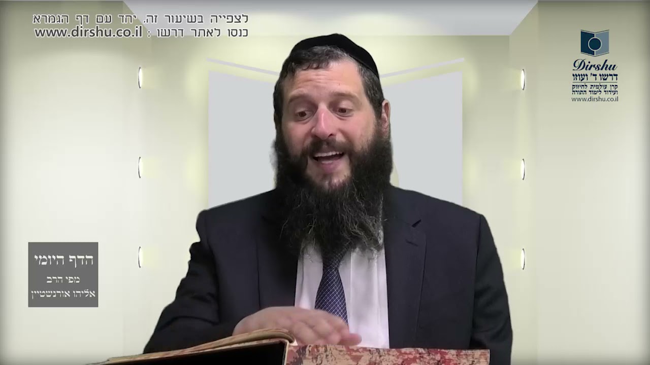 דף היומי - שיעורי הדף היומי בגמרא תלמוד בבלי מסכת ביצה מבית "דרשו" עם הרב אליהו אורנשטיין שליט"א, הדף יומי קצר וישיבתי לשיעורים נוספים באתר דרשו: http://www.dirshu.co.il/