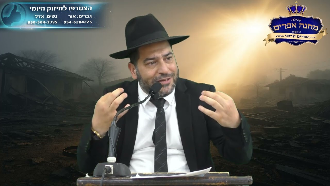 שיעורו של הרב אפרים שרבני שליט"א מתקיים מידי יום ראשון בשעה 20:00 בבית הכנסת "משכן משה" רחוב האנפה 2, שכונת גילה ירושלים. להזמנת הרב לשיעורים בכל הארץ : 054-6284225- אור קלימי