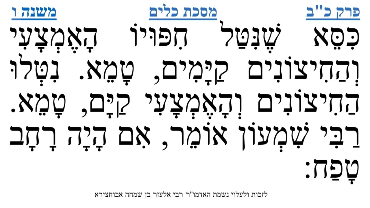 משניות מבוארות נמסרות מפי הרב ישי אבידן הלימוד לזכות ולעילוי נשמת האדמו"ר רבי אלעזר בן שמחה אבוחצירא זכר צדיק וקדוש לברכה לחיי העולם הבא.