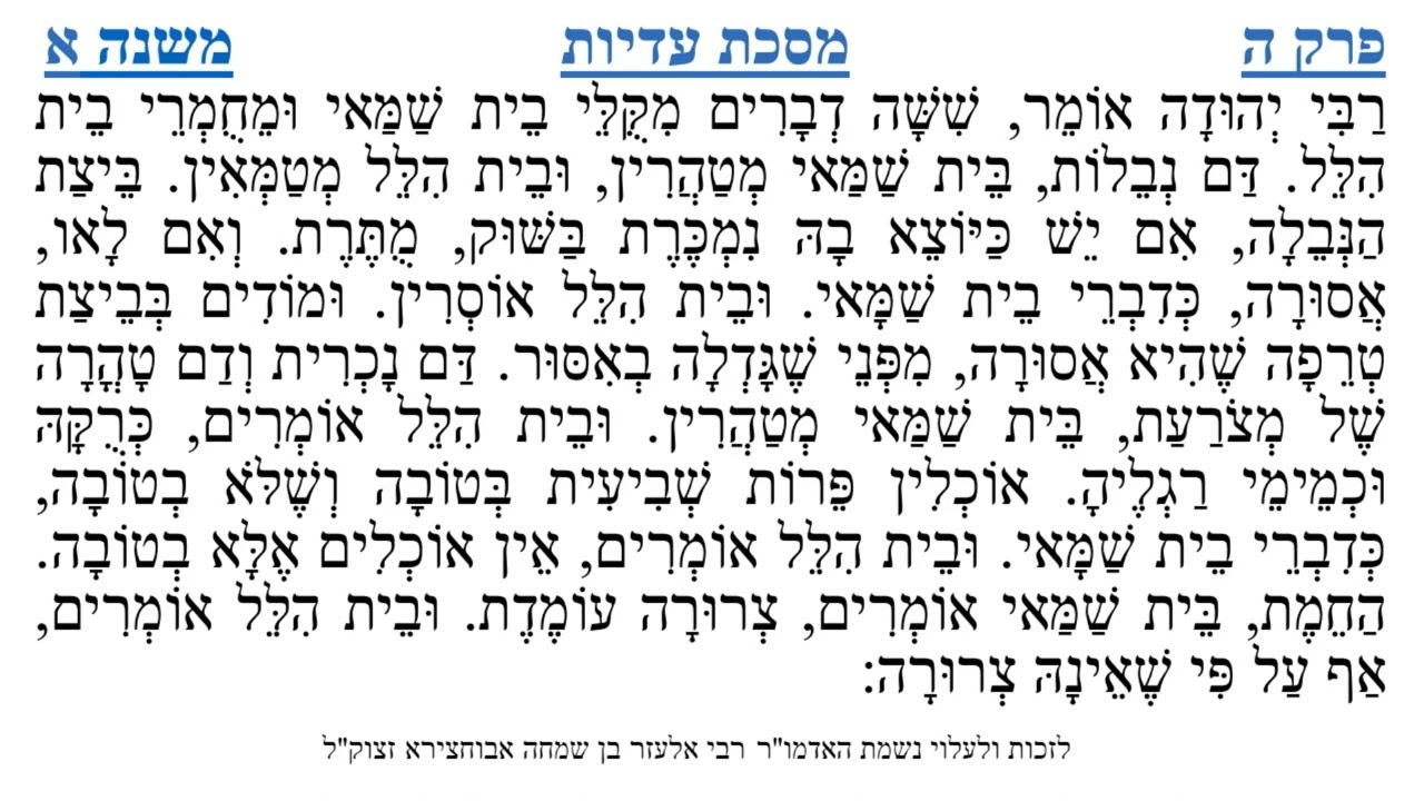 צפייה ישירה ב-YouTubeמסכת עדיות פרק ה משנה א