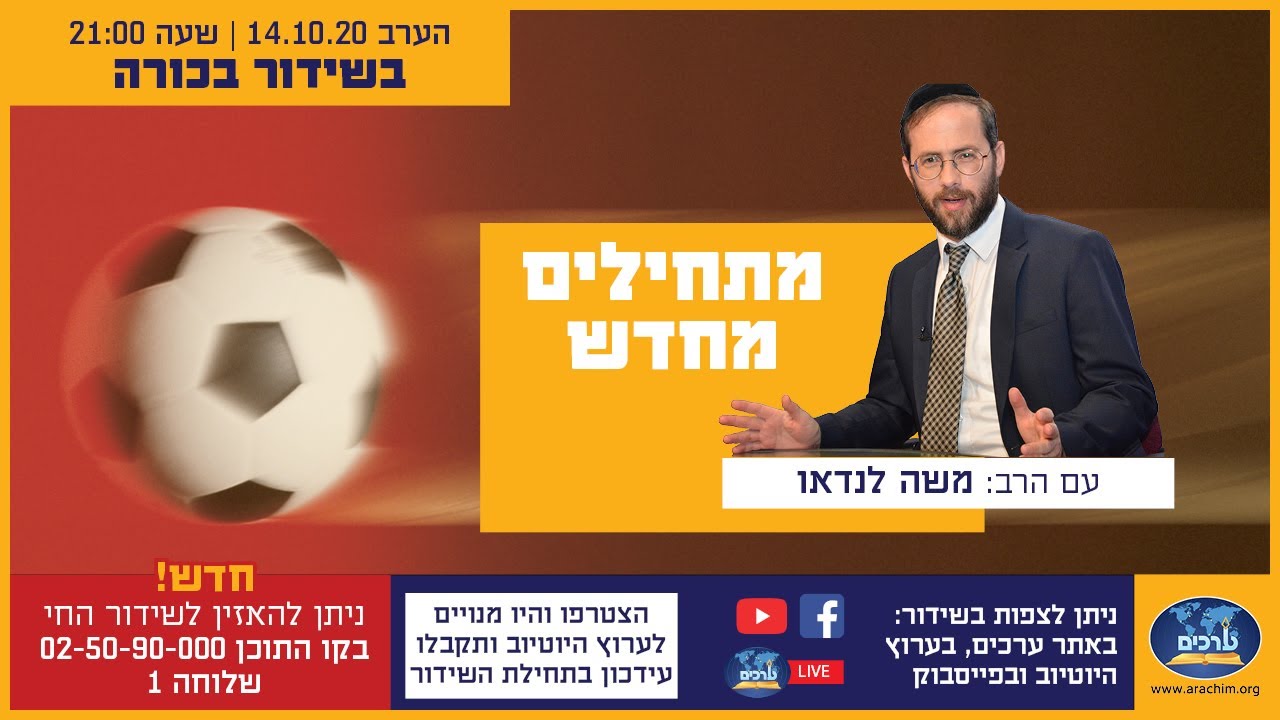 איך מתחילים מחדש ? להצליח לעשות שינוי והפעם באמת ********************** להרשמה לערוץ היוטיוב לחצו כאן:https://www.youtube.com/user/ArachimIl לקבצת ה whatsapp של ערכים: https://chat.whatsapp.com/CpBl8aQqd5j... לאתר ערכים : https://arachim.org/ לדף הפייסבוק הרשמי: https://www.facebook.com/arachimil/?e... לערוץ הרשמי של הרב ישי וליס : https://www.youtube.com/channel/UCAvY... רוצים לתרום? לחצו כאן: https://www.arachim.org/donate_site.asp להורדת אפליקציית "ערכים": https://mobile.arachim.org/redirect.asp לפרטים והרשמה לסמינרים בסופ"ש: https://www.arachim.org/BnrRedirect.a... קרדיט: הקלטת סרטונים: "ערכים מולטימדיה". *********************** אם ברצונכם להישאר מעודכנים להרצאות חדשות אל תשכחו ללחוץ על "הרשמה לערוץ" וללחוץ על הפעמון! 🔔 *********************** אפשר לקרב יהודים לערכים יהודיים, אפשר שיהודי יאמין בערכים יהודיים בלי להתנצל. מאז שנוסדה נגעה 'ערכים' בלבם של למעלה מחצי מליון יהודים בכ-35 מדינות על פני חמש יבשות. ערכים פיתחה גישה ייחודית בטיפולה בנושא ביסוס האמונה היהודית, תורה ומדע ובנתה תהליך מובנה, שיטתי וברמה אינטלקטואלית גבוהה למען האלפים והרבבות המבקשים להכיר את יהדותם, אך לא ניתנה להם הזדמנות.מחלקת התפוצות של 'ערכים' מקיימת סמינרים והרצאות בכל רחבי העולם. *********************** ערכים, ארגון ערכים, סמינר ערכים, הרב יוסף וליס, סמינריון, סמינרים, רדיו קול ברמה, רדיו, רדיו קול חי, שידור חי, יהדות, מסורת, למה, רבנים, מרצים, בר מצוה, ברית, בת מצוה, הידברות, חתונה, כשרות, חופה, יהדות, שאלות ביהדות, העם היהודי, מסעות לפולין, המסע לפולין, שואה, אושוויץ, משרפות, בירקנאו, עם ישראל, היסטוריית העם היהודי, משמעות החיים, חידת החיים, אושר בחיים, מתיקות החיים, טעמי המצוות, תנ"ך, סוד המצוות, סוד טעמי המצוות, חגי ישראל, מועדי ישראל, כח התורה, מתיקות התורה, הוכחת אמיתות התורה, לחזור בתשובה, אמיתות היהדות, מרוץ הלפיד, דגל התורה, חזרה בתשובה, הר סיני, תורה שבכתב, תורה שבע"פ, משה רבינו, העצמה אישית, טיפים יומיים, צדיק ורע לו, חזרה בתשובה, כח הראייה, כח השמיעה, כח הדיבור, רווקים, רווקות, תורמים, תורמות, אקדמאים, אקדמאיות, בוגרים, בוגרות, הרב אהרון לוי, הרב דניאל נשיא, הרב ישי וליס, הרב דוד ברוורמן, הרב שלמה שבקס, הרב צביאלי בן צור, הרב יעקב שוויי, הרב יעקב אליצור, הרב מיכאל לסרי, הרב יונתן גלעד, הרב אליעזר איזיקוביץ, הרב יוני אליצור, הרב דוד שטרית, לחזור עם תשובה, שוקי סלומון, מושיקו שטרן, אבינועם יוגב, הרצאות, הרצאה, מדרשייה, קובי לסרי, אולפנה, קפה-מדרש, קורונה, סינים, עטלף, התמודדות, הכל לטובה, הרבנית פרי כהן, אהרון לוי, הרב שלמה לוינשטיין, הרב יעקב אסטרייכר, הרב יצחק פנגר, ד"ר שלום סברניק,