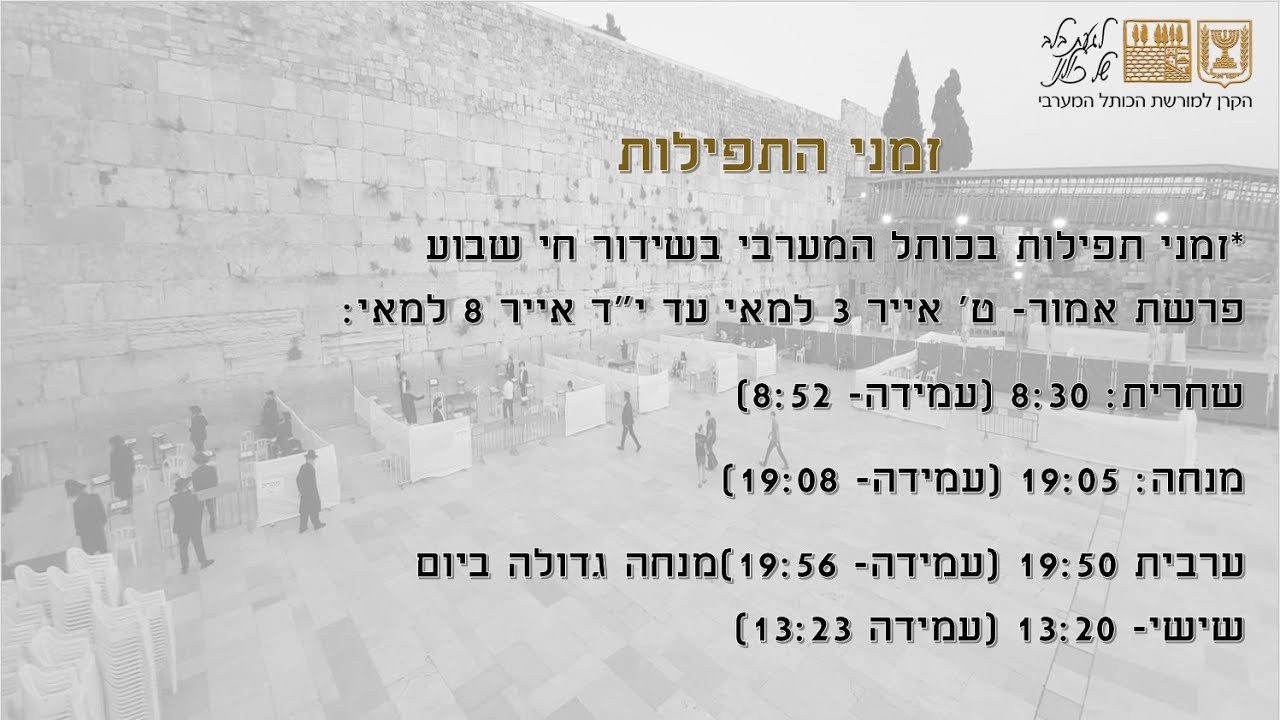 צפייה ישירה ב-YouTubeמנחה ערב שבת בשידור חי י"ד באייר יום ו' פרשת אמור (28 בעומר)