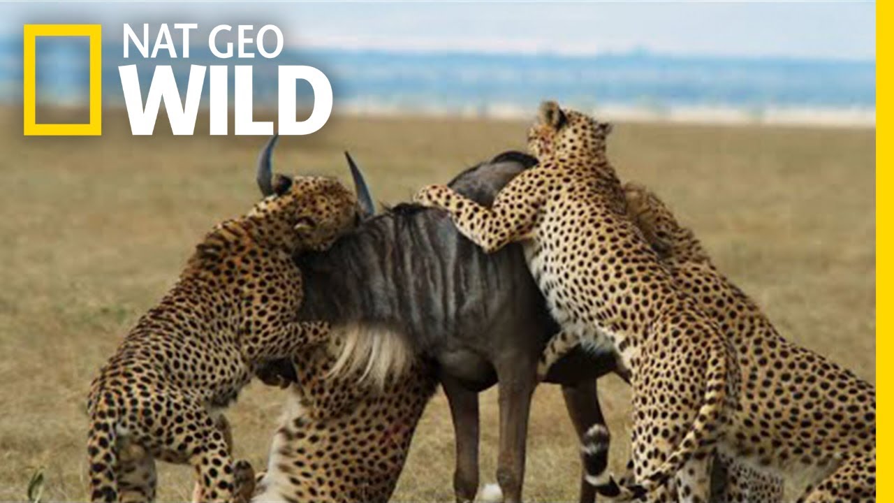 Five cheetah siblings join together and takedown an adult wildebeest. ➡ Subscribe: https://on.natgeo.com/41A7tf0 #NatGeoWILD #WildebeestTakedown The National Geographic Society uses the power of science, exploration, education, and storytelling to illuminate and protect the wonder of our world. Learn more at www.natgeo.org About National Geographic Animals: National Geographic Animals brings you closer to the wild than ever before. Take a journey through the animal kingdom to discover fierce predators, surprising behaviors, adorable babies, and more through our fascinating wildlife documentaries, series, and specials. Get More National Geographic: Official Site: https://nationalgeographic.com Instagram: https://instagram.com/natgeo Facebook: https://facebook.com/natgeo Threads: https://threads.com/@natgeo X: https://x.com/NatGeo LinkedIn: https://linkedin.com/company/national-geographic TikTok: https://tiktok.com/@natgeo Reddit: https://reddit.com/user/nationalgeographic Pinterest: https://pinterest.com/natgeo Cheetahs Takedown a Wildebeest | The Way of the Cheetah https://youtu.be/kTny1iFuTh0 Nat Geo Wild https://www.youtube.com/user/NatGeoWild