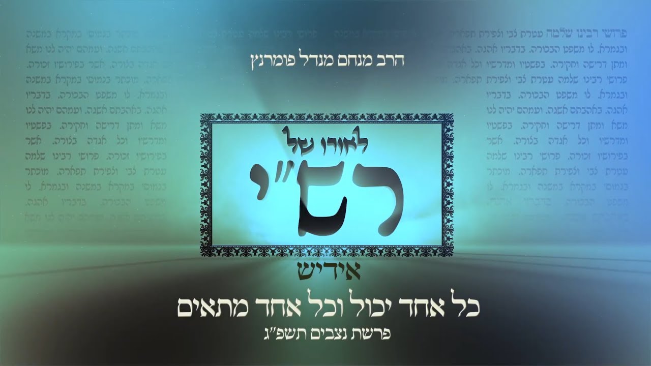 הרב מנחם מנדל פומרנץ | לאורו של רש"י -אידיש- פרשת נצבים תשפ"ג • כל אחד יכול וכל אחד מתאים •