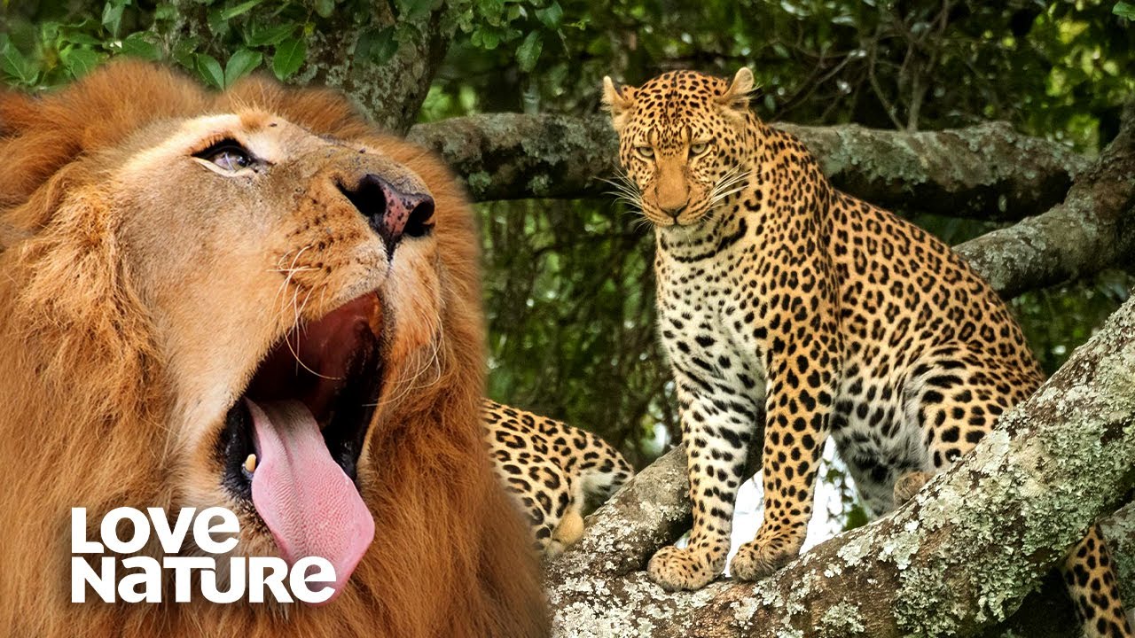 Female leopard Chip comes across the male leopard, and is ready to mate for the first time. Chip tries to get his attention, but they're interrupted by a couple of lions from a nearby pride. The lions park themselves under the male leopard's tree, trying to make a point that this territory is theirs. Chip has managed to hide, but refuses to leave her beau-to-be. After the lions leave, the leopards pick up where they left off. Watch Love Nature Anywhere: https://lovenature.com/channel-finder/ Love Nature on ROKU: https://bit.ly/3DBafVw Subscribe to Love Nature YouTube Channel: http://bit.ly/LoveNatureYT Make sure to also subscribe to our other socials: Facebook: http://bit.ly/LoveNatureFB Instagram: http://bit.ly/LoveNatureIG Twitter: http://bit.ly/LNTwitter2 #animals #leopard #lion
