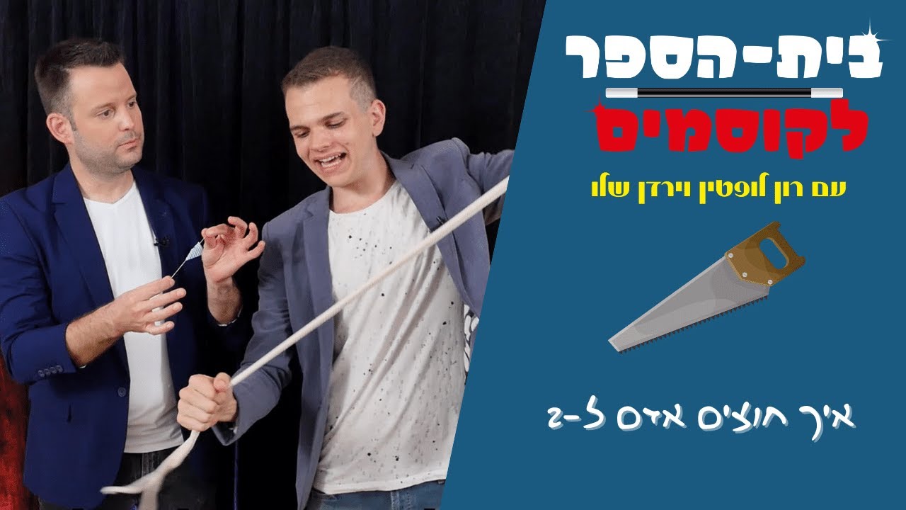 רון וירדן, מהתכנית בית הספר לקוסמים של ערוץ ZOOM, חושפים סוד מטורף- כיצד "חוצים" אדם ל-2 בעזרת חבל...! www.magic-school.co.il