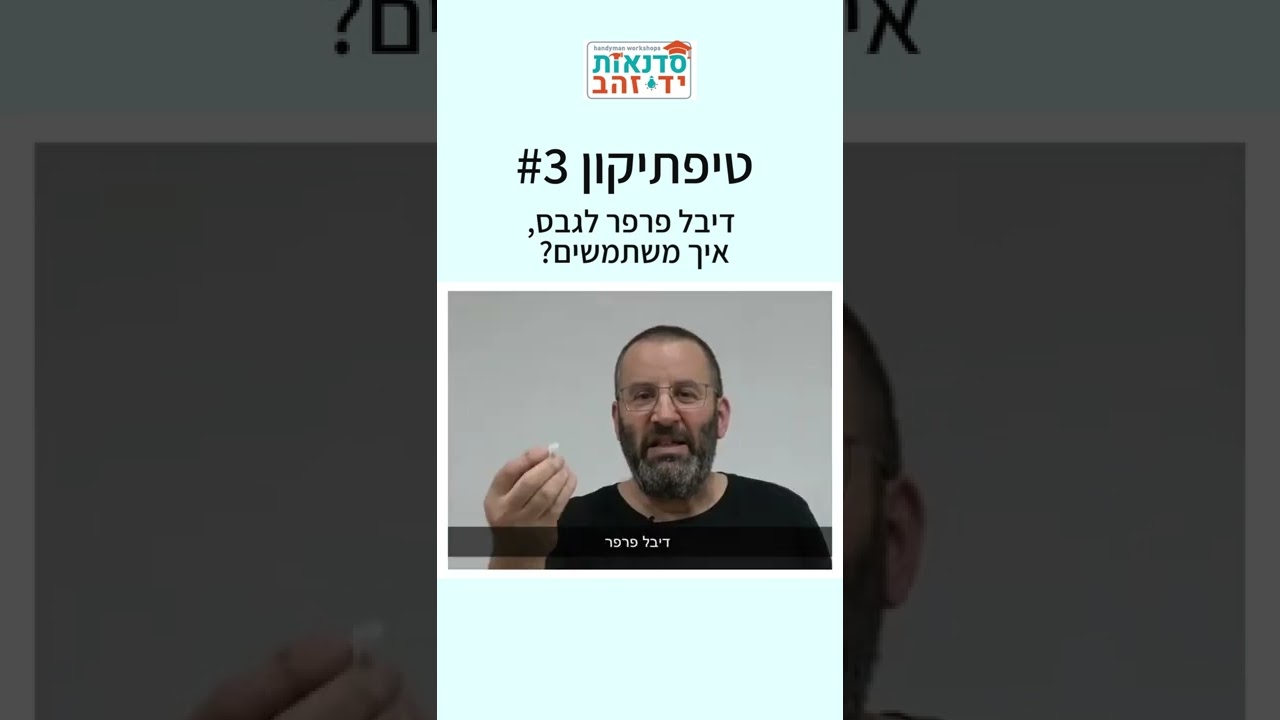 דיבל פרפר לגבס, איך משתמשים? - טיפתיקון - סדרת טיפים קצרים להבנת עולם האחזקה הביתית קצת יותר טוב. בסרטון קצר זה נלמד מה זה דיבל פרפר לגבס, כיצד משתמשים ולמה בכלל צריך. *** בשביל לתחזק את הבית לבד לא צריך כישרון טכני יוצא דופן. צריך להיות אדם ככל אדם אחר שבריא בגופו. צדקי לירן מצלם תכנים מקצועיים: סרטי הדרכה מפורטים – שיעזרו לכם/ן לתקן תקלות בבית. "סדנאות ידי זהב" של צדקי לירן הקורס המקוון - קורס הנדימן / הנדיוומן המלא בדיגיטל https://yedayzahav.co.il/online-course/ קורס הנדימן/הנדיוומן - מסלול היסודות - קורסים קרובים ללמוד לתחזק לבד את הבית שלנו. גם קורס שהוא חוויה נהדרת, גם תרגול וצבירת ביטחון, גם העצמה מטורפת וגם חיסכון בכסף. https://yedayzahav.co.il/basic-course/ קורס הנדימן/הנדיוומן - מתקדמים/ות קורס המתקדמים/ות לוקח את התחומים הנלמדים במסלול היסודות ומאפשר לתרגל אותם באופן מעשי ממשי וליישם אותם, תוך התמודדות עם ביצוע בפועל של העבודה, ומוסיף עליהם עוד תחומים - של רמה מתקדמת יותר - בהם לא נגענו במסלול היסודות. https://yedayzahav.co.il/advanced-course/ סרטוני הדרכה עם צדקי לירן מעת לעת אני מצלם תכנים מקצועיים – סרטי הדרכה מפורטים – שיעזרו לכם/ן לתקן תקלות בבית. אני מעלה אותן לערוץ YOUTUBE שלי כמובן: https://www.youtube.com/channel/UCBDdHkX2JSvQMbVeFHTyeWA אודות: הסדנאות שלי, במגוון מסלוליהן, הן ייחודיות: סדנאות אחזקת הבית לגברים ולנשים. החזון שלי הוא להגיע לכל אדם, גבר או אישה, ולאפשר להם להיות עצמאיים יותר וחסכנים יותר. המטרה שלי היא לעזור לאנשים כמוך לחוות, גם דרך הידיים, בסדנא שמעצימה את הבטחון העצמי שלך, ומעניקה לך למידה חוויתית וכלים לאחזקת הבית (כלומר, המבנה עצמו - אני לא מטפל זוגי...). כל הפרטים באתר: https://yedayzahav.co.il/