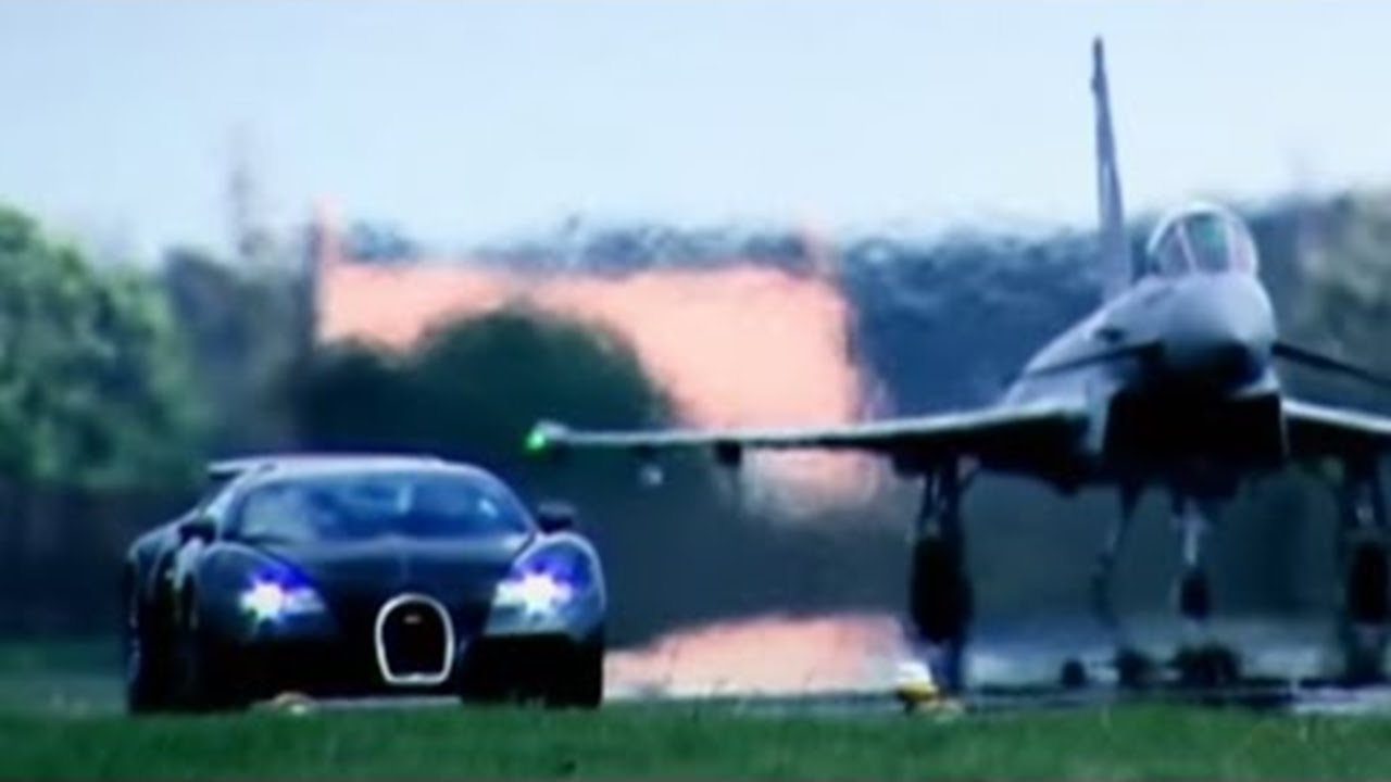 Amazing challenge as Richard Hammond races a Euro Fighter Typhoon in the Bugatti Veyron. Who will win the horizontal vs vertical 2 mile race? Clip taken from series 10 episode 3.
