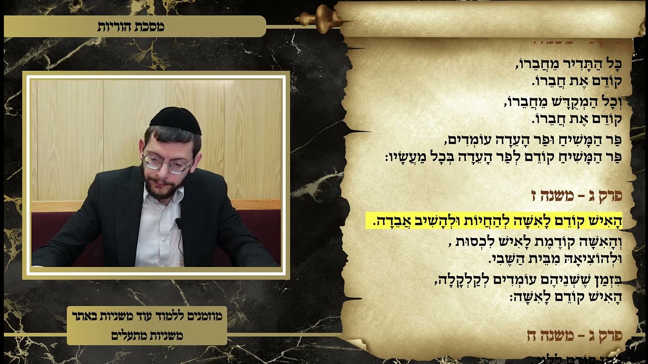 צפייה ישירה ב-YouTubeמשניות הוריות פרק ג שנה ז